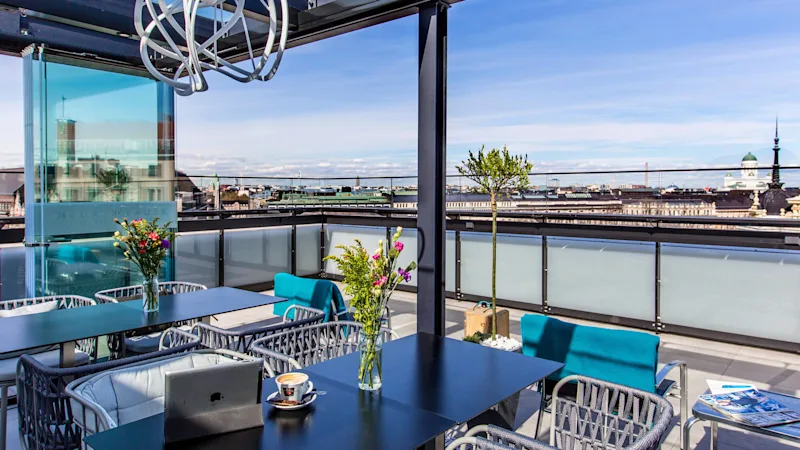 Insidertips: Efter middagen kan du ta hissen upp till Skyroom på 16:e våningen. Med fönster från golv till tak och panoramavyer från hav till himmel är det en av de bästa platserna i Helsingfors för att se solnedgången.