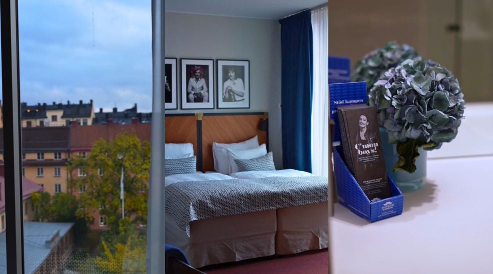 Rummet är inrett med detaljer i blå toner och ligger på femte våningen med härlig utsikt över Kungsholmens takåsar. Här finns två 90 cm breda sängar från Hilding Anders, ljust badrum med mässingsdetaljer, dusch och produkter från Rituals. Det finns även minibar, skrivbord, TV, strykjärn och hårtork.